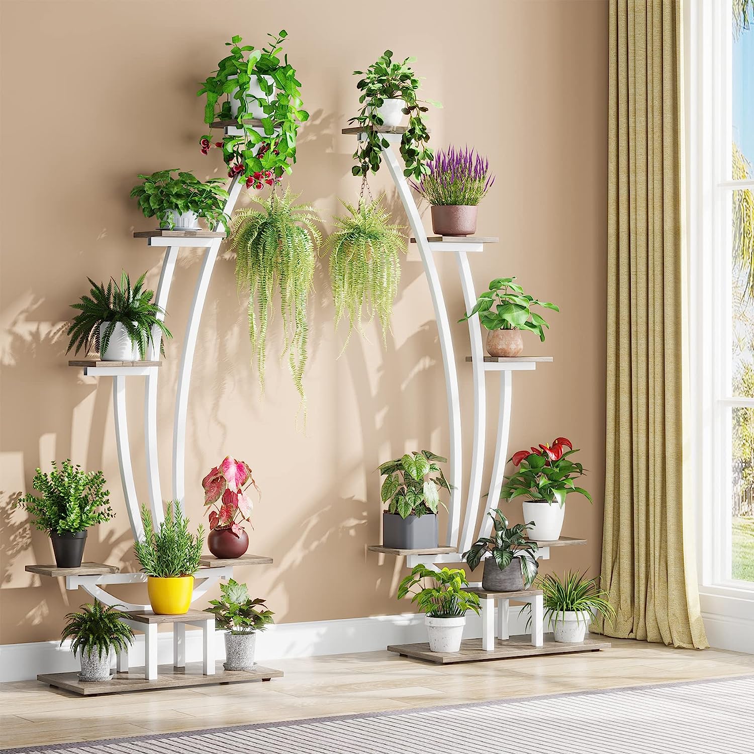 Amazon Com Yifor 2 Pcs 6 Tier Metal Plant Stand Half Moon Plant Shelf Holder Indoor Tall Ladder Plant Stand Large Plant Display Stand Rack For Living Room Balcony Patio Garden